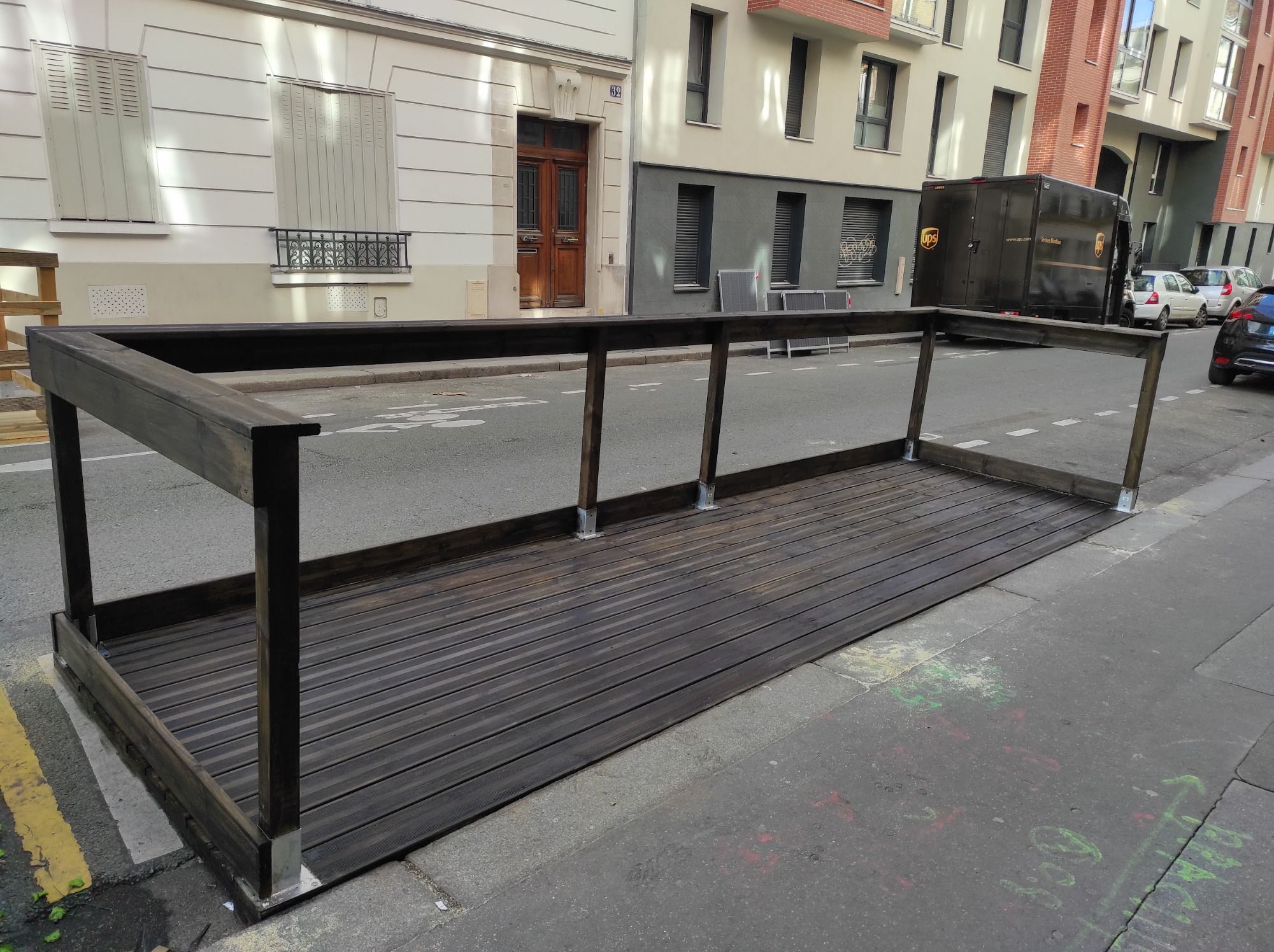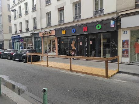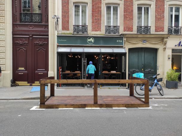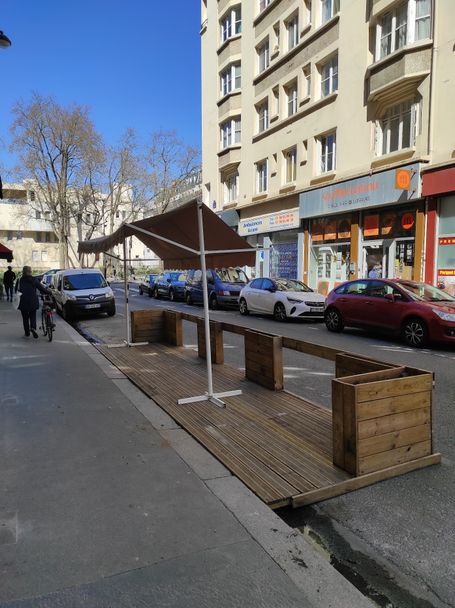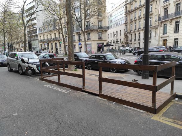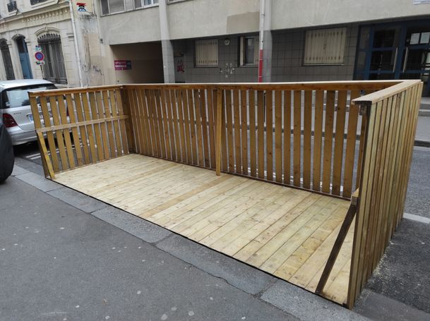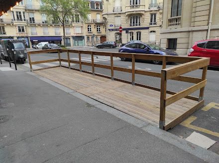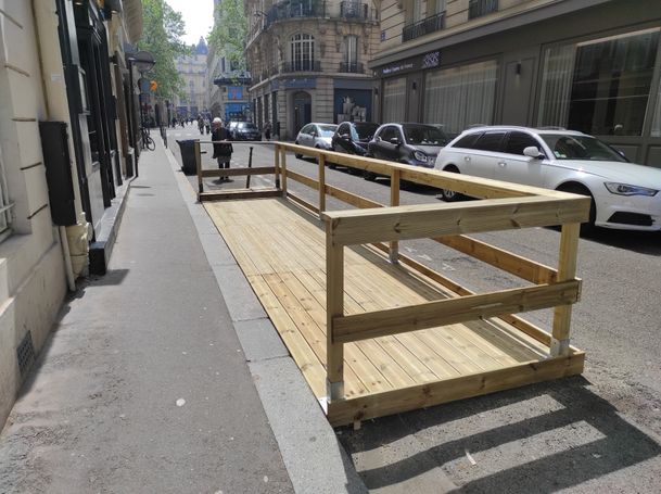 Suivant une charte précise mise en place par la Mairie de Paris, nous réalisons des terrasses en bois massif démontable pour la réinstallation l'année suivante.